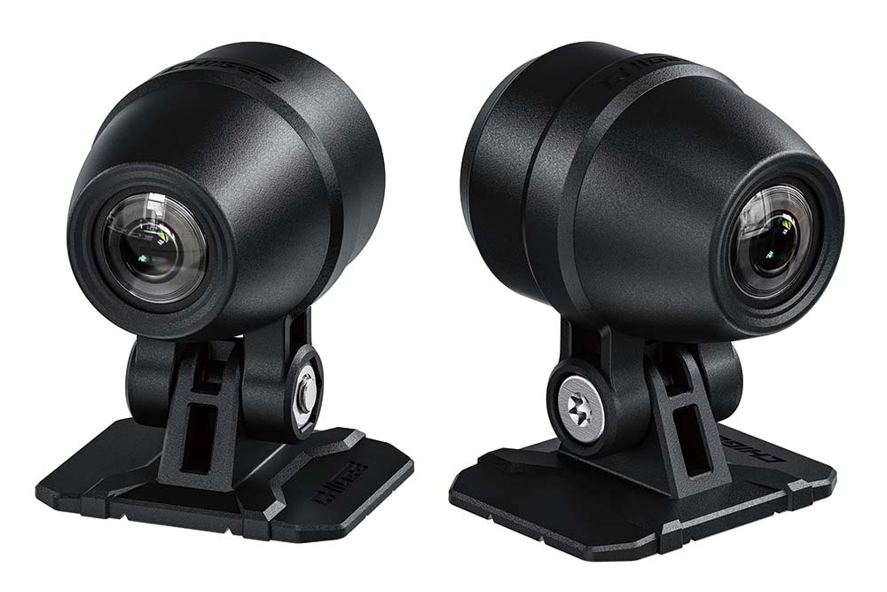 前後カメラセットと2種の取り付けベースを別売りで用意。