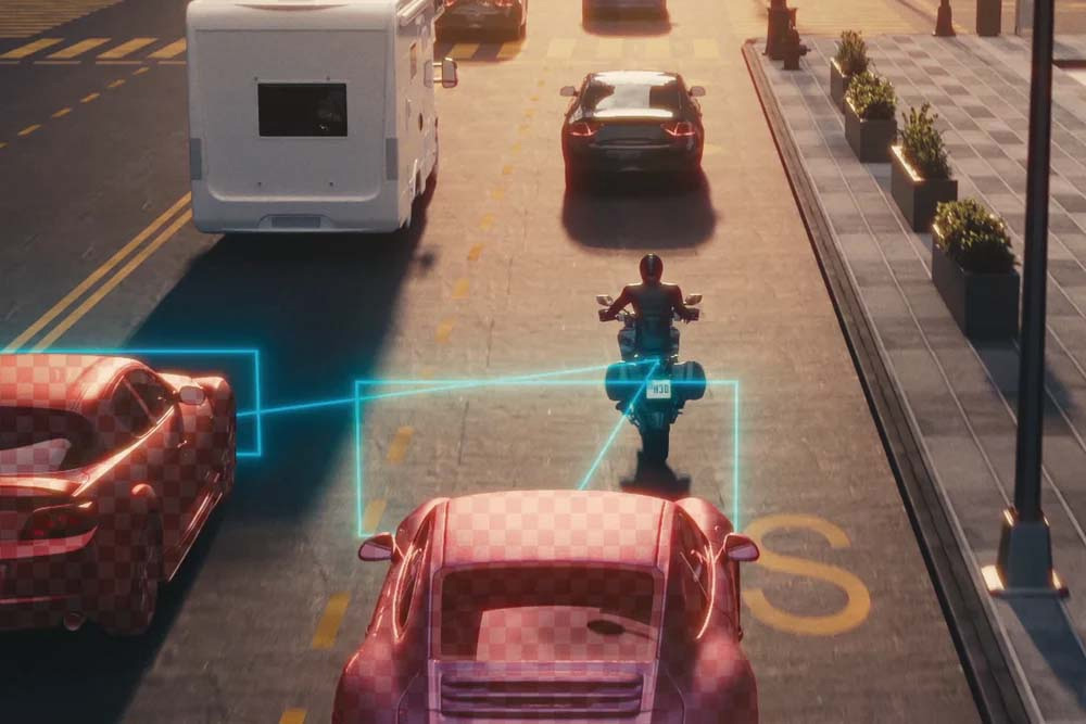 センサーが振動や衝撃を検知するとすぐにスマートフォンへ通知が届きます。前後カメラ(SRS-031/別売り)でリアルタイム映像を確認できるため、離れた場所からでもバイクの状況をすぐに把握できます。