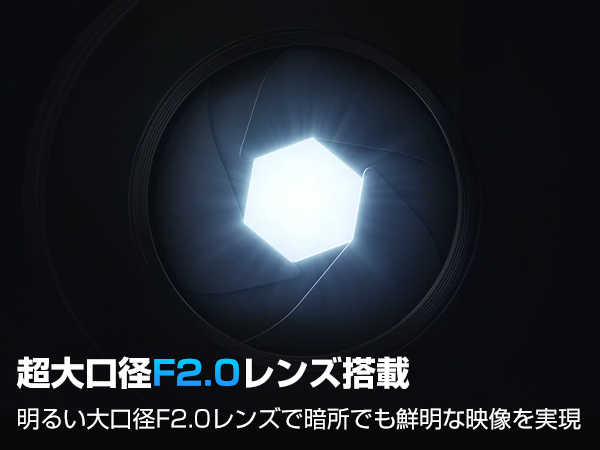 200万画素122度の超広角レンズとF値2.0の大口径レンズ